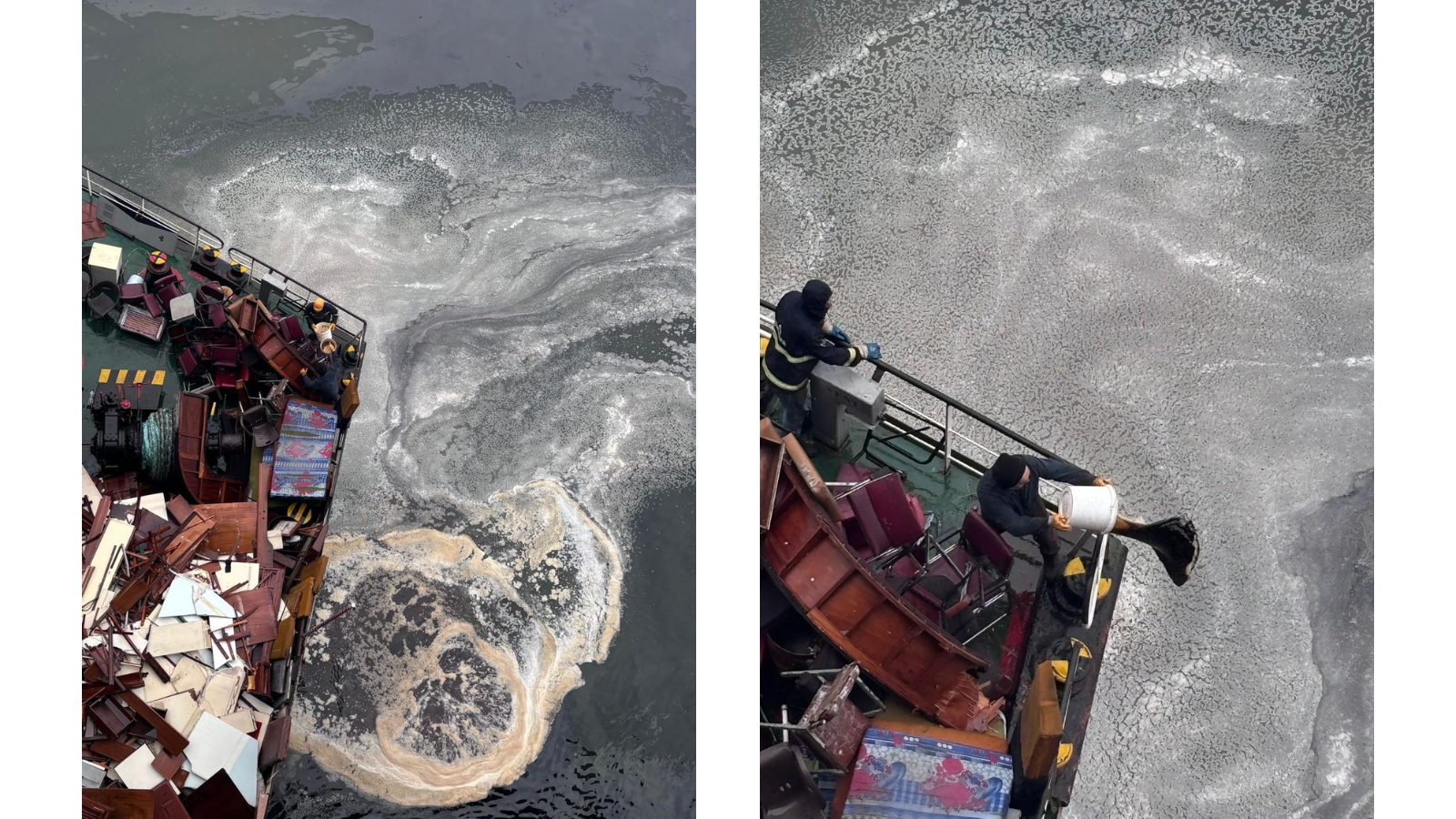 Another accident happened on 8 January at the EU-listed Leyal yard, where GNV Antares (IMO 8503797) collided with an oil platform in the neighbouring Metaş yard, causing serious damage and flooding at the stern, including the engine room. Since then, oil residue, likely mixed with other pollutants, has been continuously and deliberately being discharged into the sea through pipes.